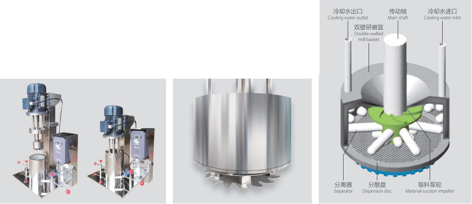 This machine combines both milling and dispersing function. New design with energy saving, high efficiency, easy operation,easy maintenance, cleaning and changing color. Applicable for independent tank operation and high/low viscosity paste.